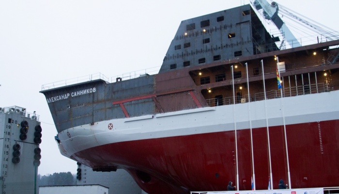 Судно "Александр Санников" было заложено 3 ноября 2015 года. В настоящее время на предприятии также ведут работы по формированию корпуса второго судна. Оба ледокола планируется передать заказчику до 2018 года.