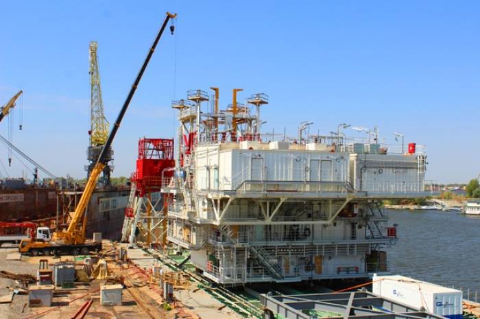 На прошлой неделе на Астраханском судостроительном производственном объединении (входит в состав ОСК) завершилась операция по погрузке подвышечного основания и буровой вышки для ЛСП-1. Об этом Sudostroenie.info стало известно из сообщение пресс-службы Объединенной судостроительной корпорации.