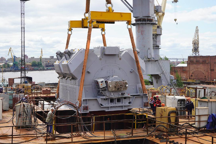 Как уточняют на Балтзаводе, на днях на борт строящегося атомохода были подняты и установлены центральный гребной электродвигатель и турбогенератор левого борта. Операции по погрузке оборудования проводились с использованием плавучего крана при участии нескольких буксиров и специалистов различных цехов предприятия. В настоящее время корабелы завода приступили к монтажу оборудования на фундаментах.