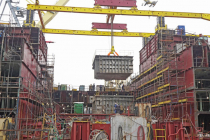 Специалисты Балтийского завода ОСК установили агрегат весом 38,5 тонн и мощностью 2000 кВт на штатное место при помощи портального крана.
