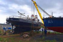 За 21 день специалисты произвели средний ремонт главных двигателей, ремонт движительно-рулевого комплекса, восстановление гидравлических систем и забортной арматуры, ремонт электрооборудования, окраску судна и трюмов; палубные и сварочные работы.