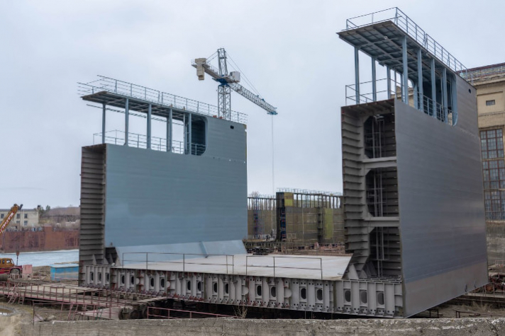 Корабелы АСЗ вывели на стапель очередной блок дока-понтона "Амурец"
