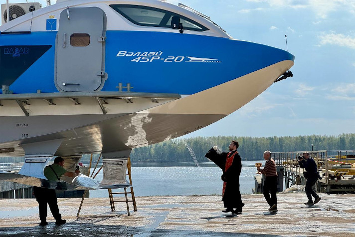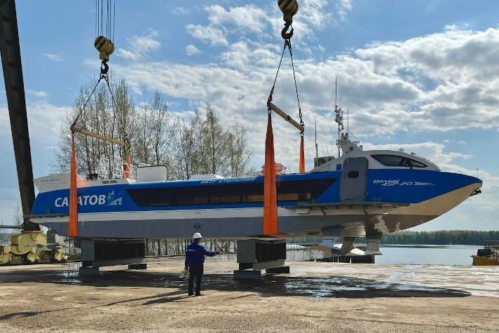 22 апреля на производственной площадке "ЦКБ по СПК им. Р.Е. Алексеева" в Нижегородской области состоялся спуск на воду второго судна на подводных крыльях (СПК) "Валдай 45Р" для Саратовской области.
