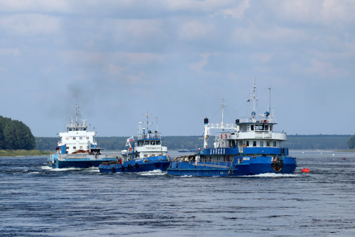 Единственный действующий в РФ речной туер приступил к проводке судов на сложном участке Енисея