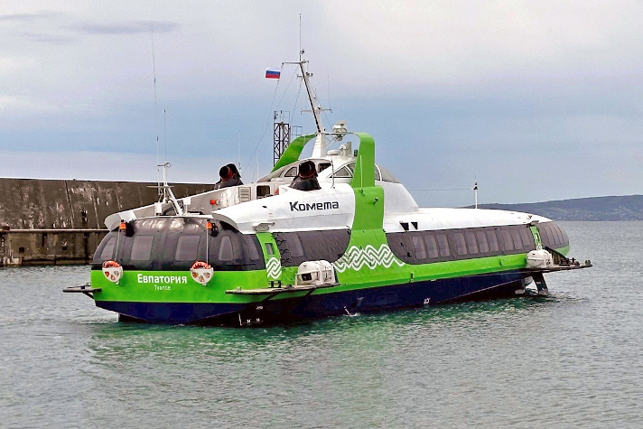 По контракту с ГТЛК, который был заключен в рамках программы льготного лизинга водного транспорта с государственным финансированием, ОСК построила две "Кометы 120М". Первое судно на подводных крыльях проекта 23160 "Космонавт Павел Попович" в начале июня этого года вышло на маршрут Сочи-Геленджик. СПК "Евпатория" будет эксплуатироваться компанией-оператором "Морские скоростные пассажирские перевозки" также в Азово-Черноморском бассейне.