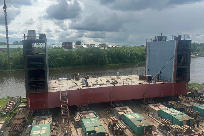 Закладка плавдока прошла 16 апреля на площадке ПАО "ССК" в г. Городец Нижегородской области. Ввод дока в эксплуатацию запланирован на декабрь 2025 года.