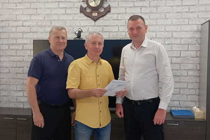 По результатам освидетельствования компании "СТТ Марин Сервис" выдано свидетельство о собственном производстве (ССПП) радиотрекеров для отслеживания орудий лова и токосъемников для судовых кабельных лебедок. Документ представителям предприятия вручил директор Дальневосточного филиала РС Лев Зиньковский.