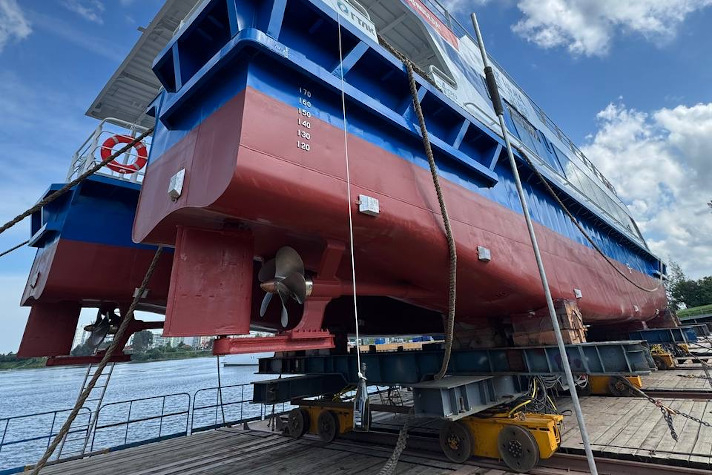 Теплоход "Мустай Карим" вновь поднят на слип завода ОСК "Красное Сормово"