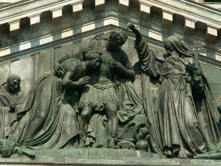 Фрагмент рельефа на западном фронтоне Исаакиевского собора (созданы с помощью техники гальванопластики Б.Якоби). Источник: Wikipedia.org