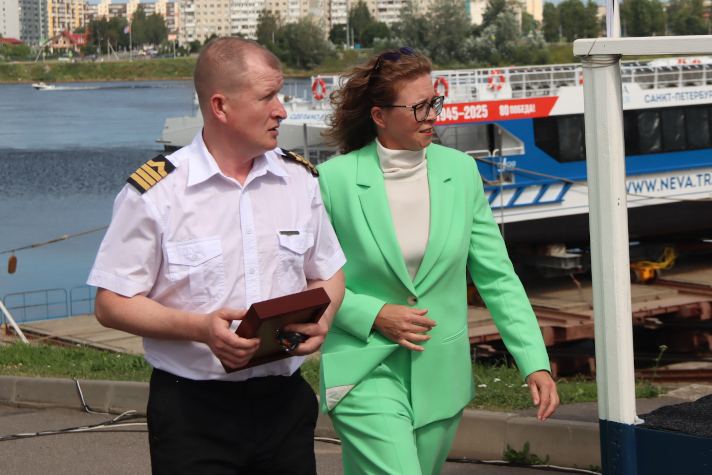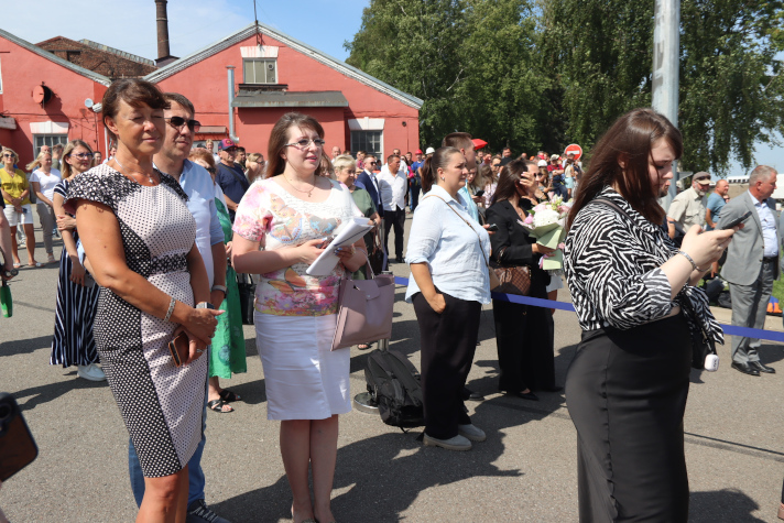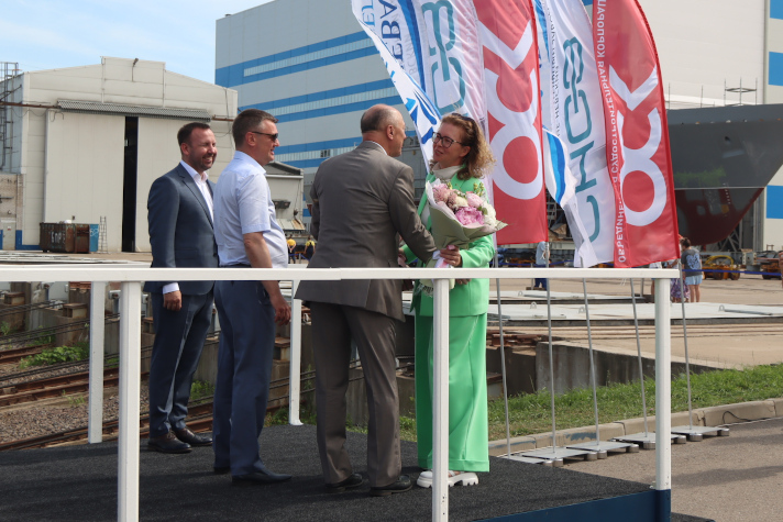 В торжественной церемонии приняли участие представители администрации Санкт-Петербурга, судоходной компании "Нева Тревел", туристско-рекреационного кластера "Остров фортов" в Кронштадте, Средне-Невского судостроительного завода.