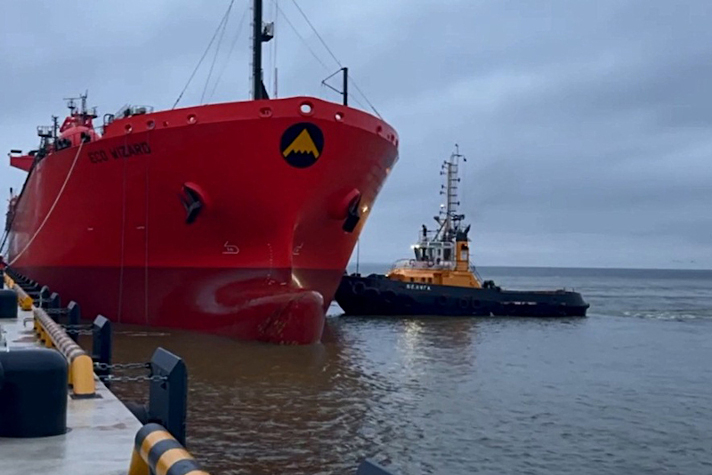 Лоцманы Виктор Семенчевский и Максим Краснов 9 декабря 2025 года осуществили сложную лоцманскую проводку буксирного ордера в составе буксира "Тарпан" и газовоза Eco Wizard.