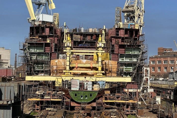 Напомним, строительство серии универсальных атомных ледоколов проекта 22220 (разработчик – ЦКБ "Айсберг") ведётся на Балтийском заводе ОСК по заказу ФГУП "Атомфлот" госкорпорации "Росатом". "Ленинград" является пятым серийным (шестым по счёту) судном серии. Закладка ледокола состоялась 26 января 2024 года. В настоящее время ведутся работы по формированию корпуса судна и установке на борт оборудования.