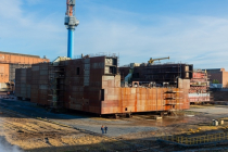 Плавучий док проекта 02122 со спусковой способностью 23,5 тысяч тонн строится в рамках доковой программы ОСК при поддержке Минпромторга России. Исполнителем контракта выступает компания "Севмаш-шельф".